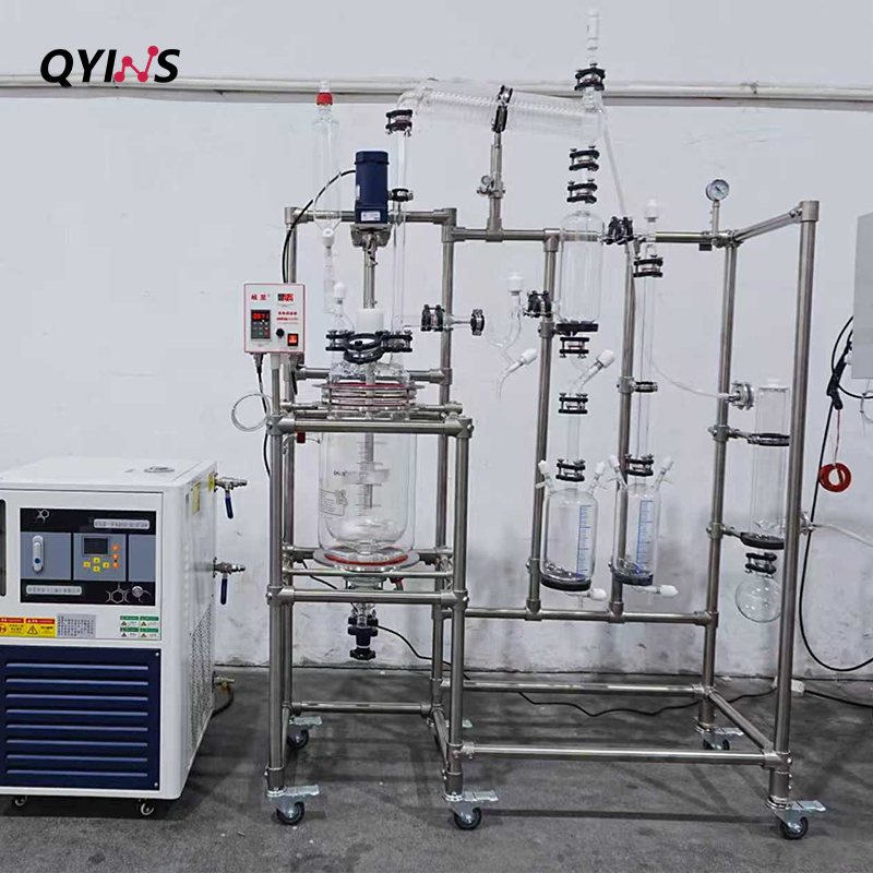 高同心度和高透明度,内置蛇形玻璃盘管冷凝器配套316不锈钢搅拌框,结合四氟刮条.
