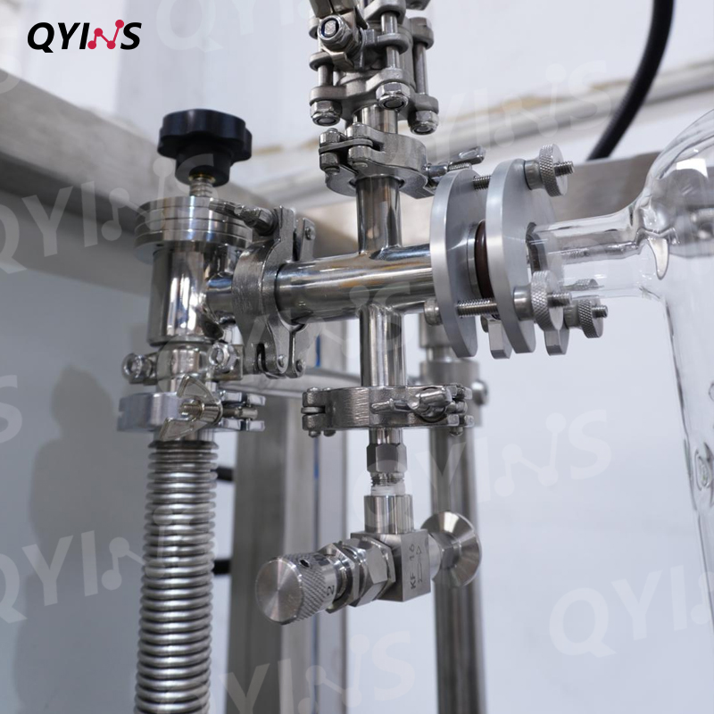 产品描述:150C玻璃薄膜蒸发器作为一款高效精密蒸发设备,凭借多项升级设计与稳定性能,适配精细化工、制药、食品等行业的物料浓缩、提纯需求。设备采用加厚不锈钢框架设计,提升了结构刚性与承重稳定性,外观平整光滑,美观性大幅提升,适配洁净车间等对环境与设备颜值有要求的场景,油路管道硬管连接,耐用性与安全性双提升,齿轮泵稳定进料,物料传输更均匀,加大冷凝器设计,冷凝效率显著提升,无油螺杆泵配置,真空环境更洁净,双温控控制箱,温度调控更精准 配备了截断阀门,可在不断真空下放料